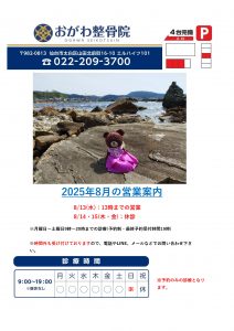 R7.8 | 仙台市太白区で腰痛・骨盤矯正(歪み改善)が評判 | 口コミ多数の人気の整骨院|太白区おがわ整骨院