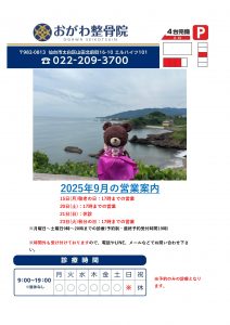 令和7年9月の営業案内