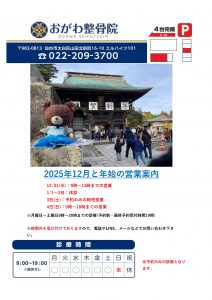 R7.12 | 仙台市太白区で腰痛・骨盤矯正(歪み改善)が評判 | 口コミ多数の人気の整骨院|太白区おがわ整骨院